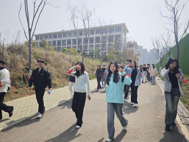 仲春的校园里姹紫嫣红,4月2日下午,学生们戴上红袖章,化身“校园探险家”,在校内开启了一场“寻宝之旅”——“宝藏”不是金币,而是藏在角落里的春日小美好。