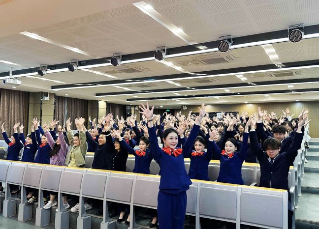 来到“压力再大也不怕”时刻,管老师突然示意全场闭眼拍击。此刻,心跳声与桌面共振,烦恼化作可见的声波在空气中消散。当终曲“武职的我们永远闪亮”落下最后一个音符时,有人发现镜面天花板上映出的,是在座被阳光镀金的笑脸——那是课桌间升腾的,属于Z世代的“情绪魔法”。